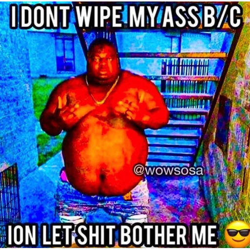 I DONT WIPE MY ASSB/C @wowsosa ION LET SHIT BOTHER ME