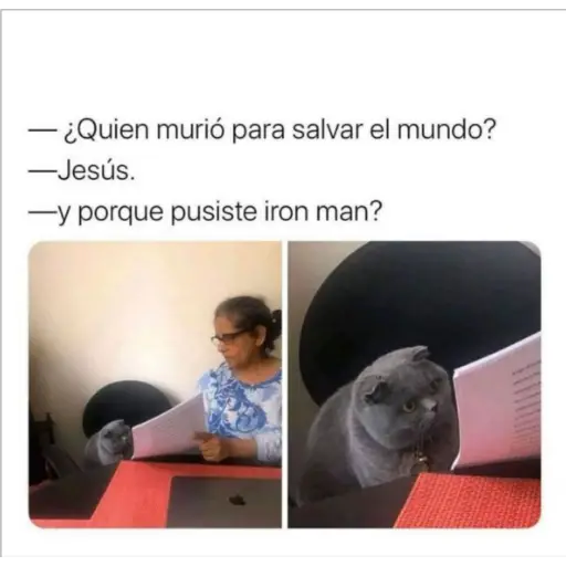 -¿Quien murió para salvar el mundo? -Jesús. -y porque pusiste iron man?