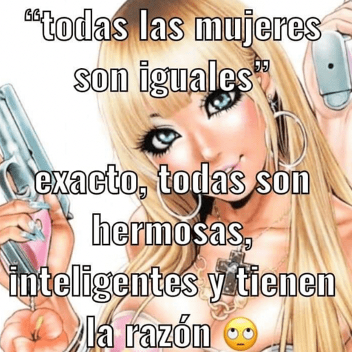 "todas las mujeres son iguales 55 exacto, todas son hermosas, inteligentes y tienen la razón