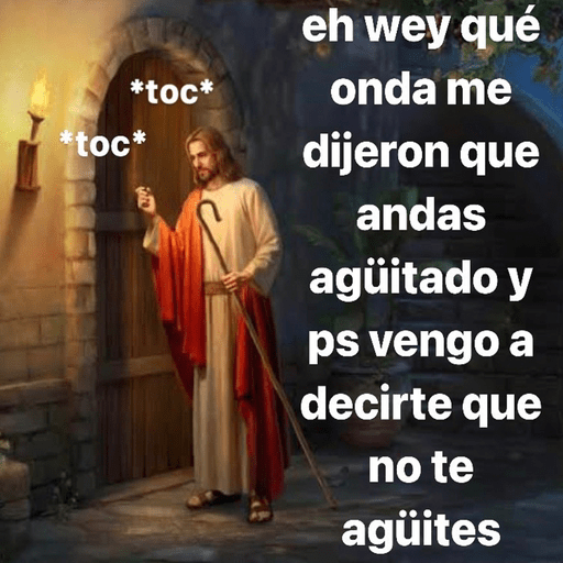 *toc* *toc* eh wey qué onda me dijeron que andas agüitado y ps vengo a decirte que no te agüites