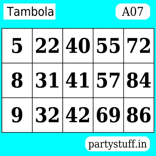 Tambola A07 5 22 40 55 72 8 31 41 57 84 9 32 42 69 86 partystuff.in