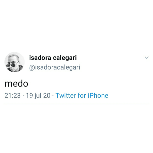 isadora calegari @isadoracalegari medo 21:23 19 jul 20 Twitter for iPhone