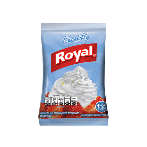 Chantilly Royal 1 porción (10 g aporta 8% 30mg Rinde Litro Mezcla en Polvo para Preparar Contenido Neto: 100g Chantilly