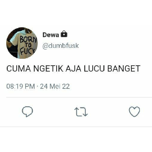 Dewa BORN TO @dumbfusk FUCK CUMA NGETIK AJA LUCU BANGET 08:19 PM 24 Mei 22 O
