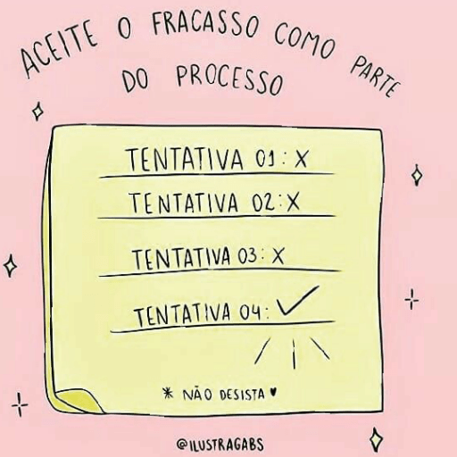 ACEITE O FRACASSO COMO PARTE DO PROCESSO M ♫ TENTATIVA 01: X TENTATIVA 02:X TENTATIVA 03: X TENTATIVA 04: * NÃO DESISTA @ILUSTRAGABS ✓ $ 4-