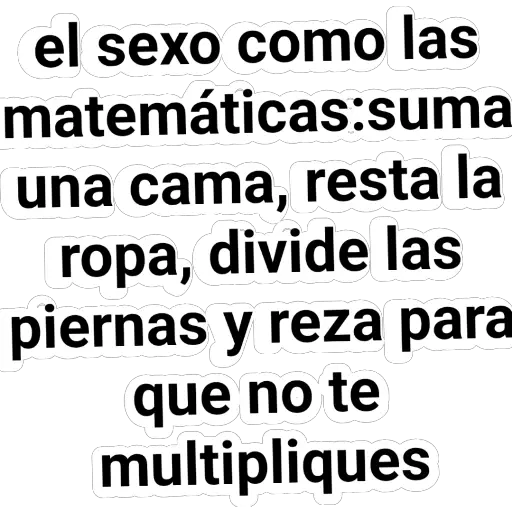el sexo como las matemáticas:suma una cama, resta la ropa, divide las piernas y reza para que no te multipliques