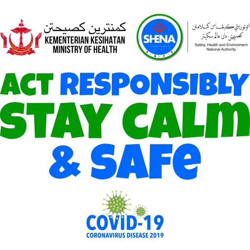 کمنترین کصیحتن KEMENTERIAN KESIHATAN MINISTRY OF HEALTH SHENA اوتوريتي كبغسا من كلامتن كصيحتن دان عالم سكيتر COVID-19 CORONAVIRUS DISEASE 2019 Safety, Health and Environment National Authority ACT RESPONSIBLY STAY CALM & SAFE
