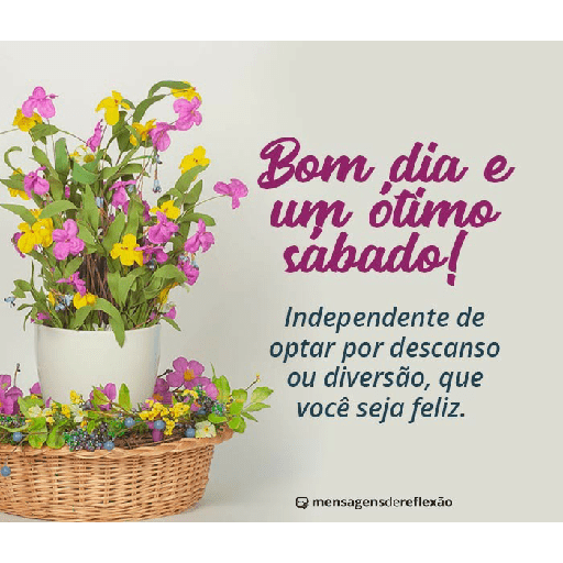 Bom dia e um ótimo sábado! Independente de optar por descanso ou diversão, que você seja feliz. mensagensdereflexão