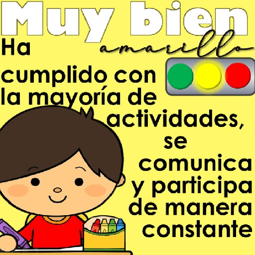 Muy bien amarillo Ha cumplido con la mayoría de actividades, se comunica y participa de manera constante