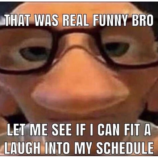 THAT WAS REAL FUNNY BRO LET ME SEE IF I CAN FIT A LAUGH INTO MY SCHEDULE