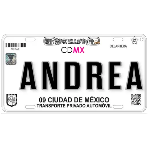 A00-AAA Et RWGRILLØwat CDMX DELANTERA ANDREA 09 CIUDAD DE MÉXICO TRANSPORTE PRIVADO AUTOMÓVIL